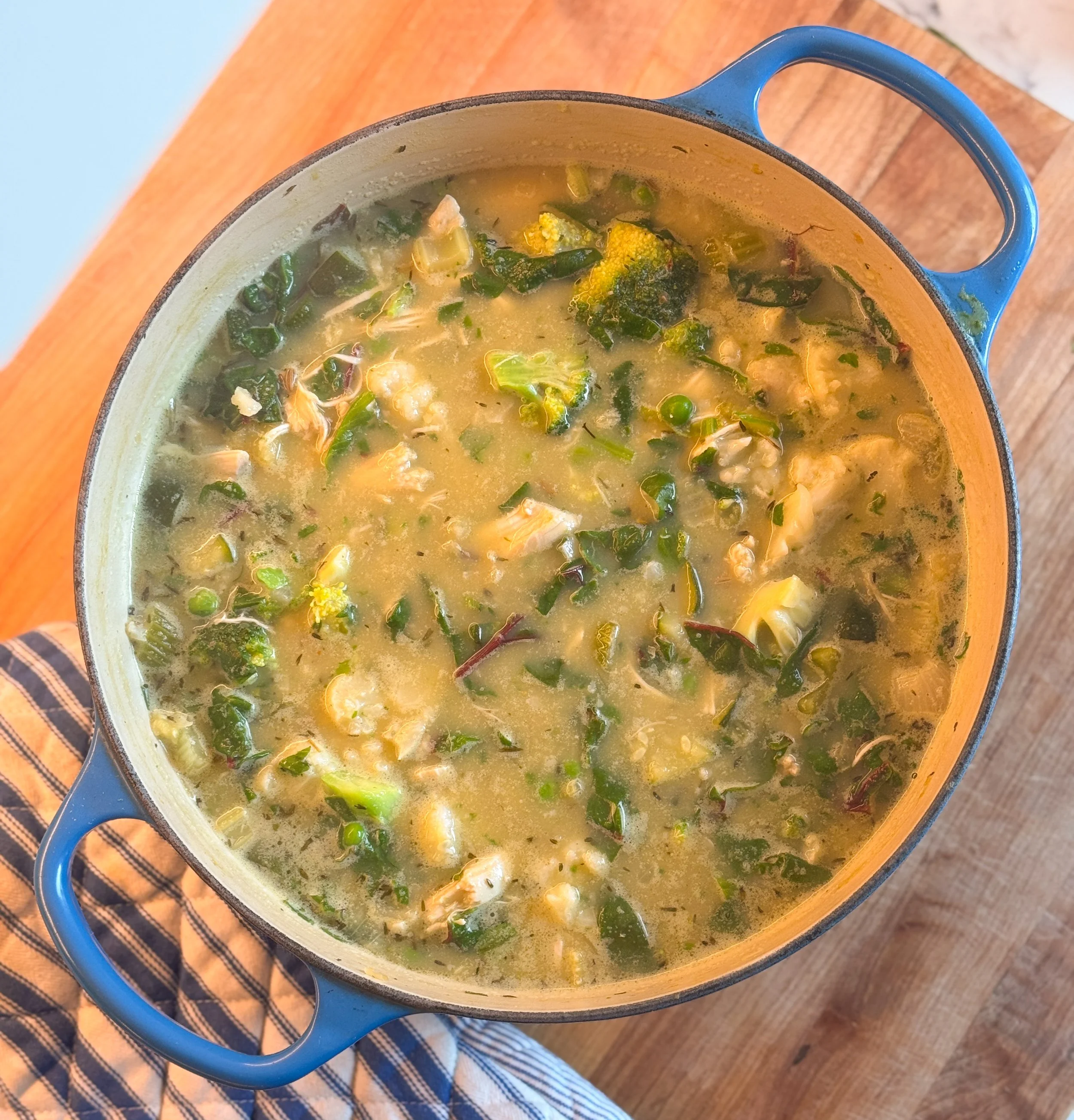 Make vegetarian or vegan: Swap bone broth for veggie broth, leave out the turkey or chicken, omit parm.