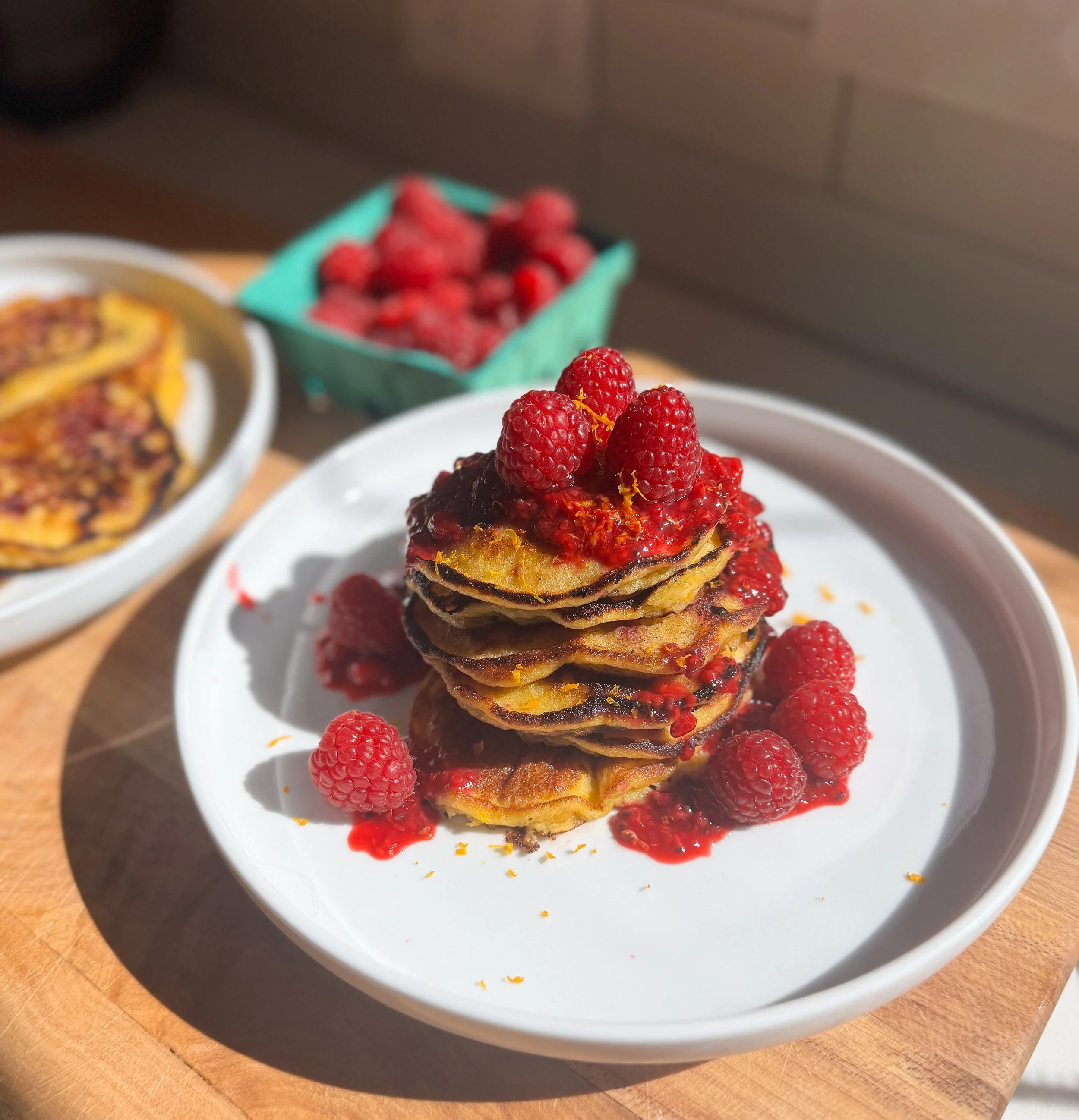 Serve these with a raspberry compote instead of maple syrup, and add some breakfast sausages on the side for bonus protein if you want! See more notes below.